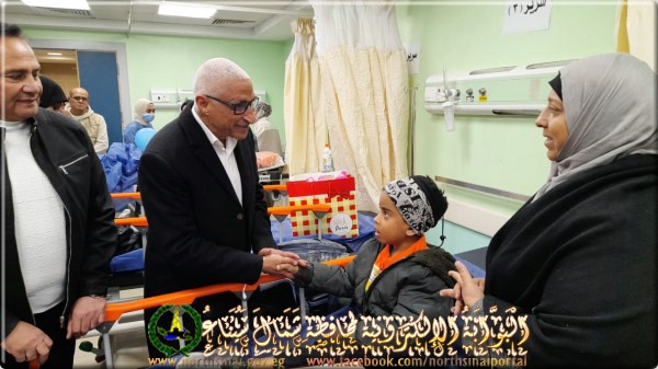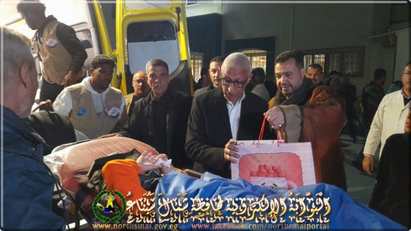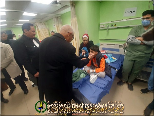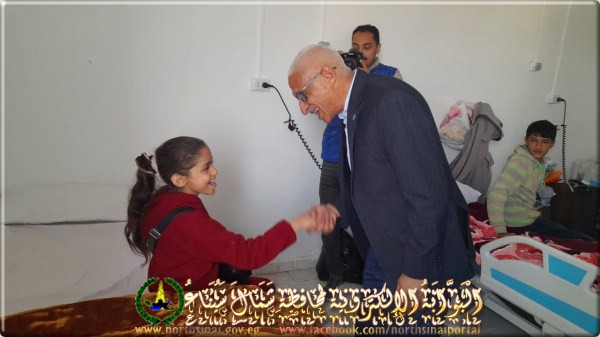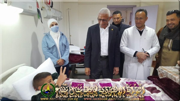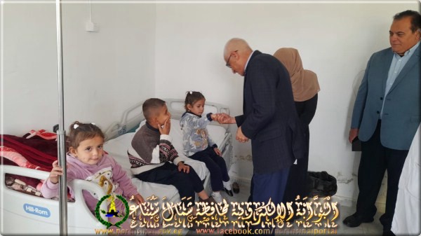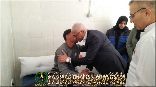 زار اللواء دكتور خالد مجاور محافظ شمال سيناء ، اليوم الخميس ، المرضي الفلسطينيين في مستشفي الشيخ زويد المركزي.