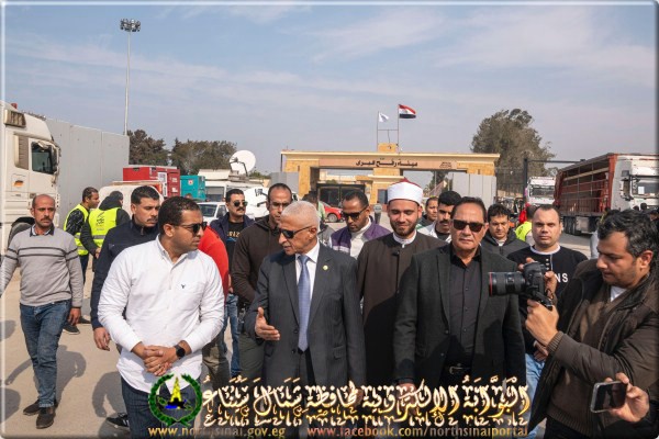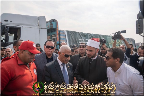 شهد اللواء دكتور خالد مجاور محافظ شمال سيناء، اصطفاف شاحنات التحالف الوطني للعمل الأهلي التنموي ، أمام معبر رفح البري.