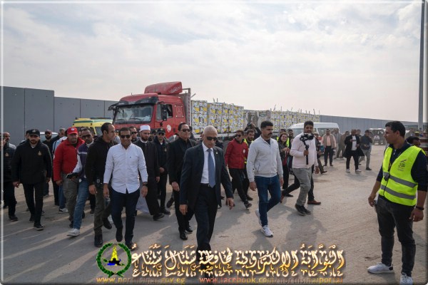 وثمن المحافظ الجهود التي يقوم بها التحالف الوطني في تجميع وإعداد المساعدات وتحميلها علي شاحنات تمهيدا لإدخالها إلي قطاع غزة.