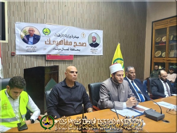 وفى كلمته: ثمّن الأستاذ ايهاب حسن عبد الوهاب، وكيل وزارة الشباب والرياضة بشمال سيناء، جهود وزارة الأوقاف في إطلاق المبادرة، مؤكدًا أنها مشروع وطني متكامل لتصحيح المفاهيم الدينية والسلوكيات المجتمعية الخاطئة، ومواجهة التطرف الديني واللاديني والشائعات والانحرافات الفكرية، بما يعزز قيم الانتماء والاعتدال ويكرّس الهوية الوطنية.