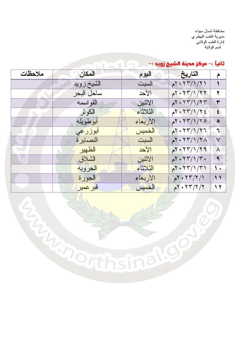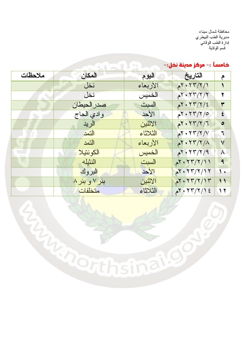 ستنطلق يوم السبت الموافق 21 يناير 2023 فعاليات الحملة القومية الأولي لتحصين الحيوانات ضد مرضي الجلد العقدي وجدري الأغنام لعام 2023 بجميع مراكز المحافظة .