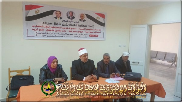 أضافت سالم، أن القافلة السكانية بمشاركة الأزهر الشريف، وزارة العدل ، مديرية الصحة، مديرية الشباب والرياضة ، الهلال الأحمر المصري بشمال سيناء، هيئة محو الأمية وتعليم الكبار.