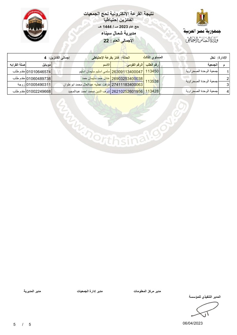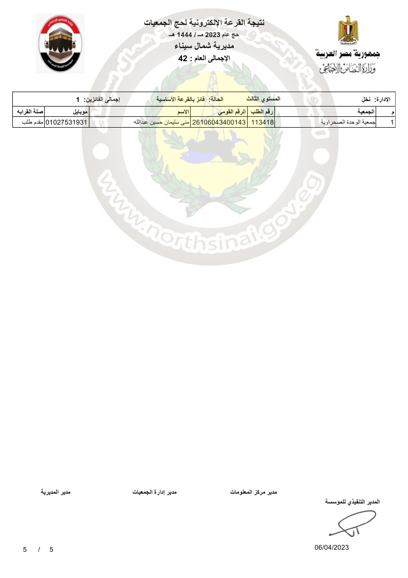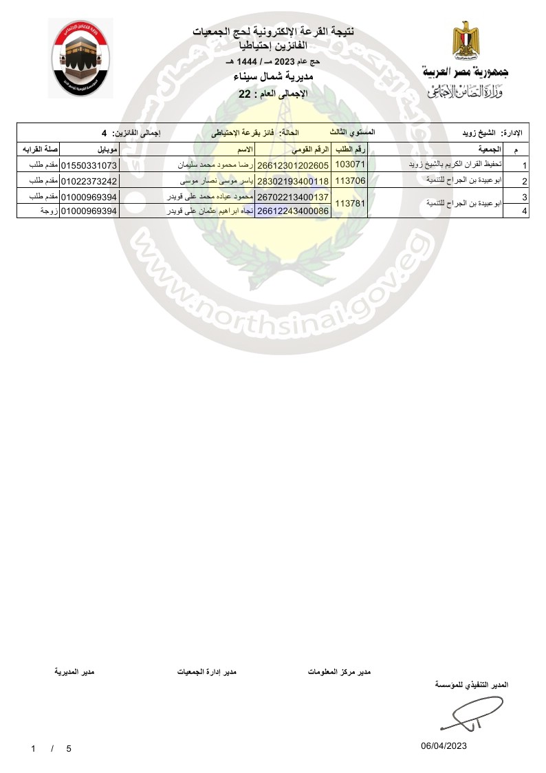 تقدم اللواء دكتور محمد عبد الفضيل شوشة، محافظ شمال سيناء، بالتهنئة للفائزين من أبناء المحافظة في قرعة حج الجمعيات الاهلية لموسم حج 1444ه- 2023م.