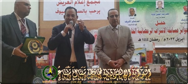 أقيمت الاحتفالية بمركز اعلام العريش بحضور اللواء د.محمد عبد الفضيل شوشة محافظ شمال سيناء وأحمد صابر الشريف نقيب الأشراف بشمال سيناء والشيخ محمود مرزوق مدير عام أوقاف شمال سيناء والشيخ عبد الكريم الشريف شيخ عائلة الأشراف والنائب فايز ابراهيم حرب عضو مجلس النواب .. الى جانب ابراهيم وهبى الشريف وجميل وهبى الشريف الرعاة الداعمون للمسابقة ومقدمى الجوائز .