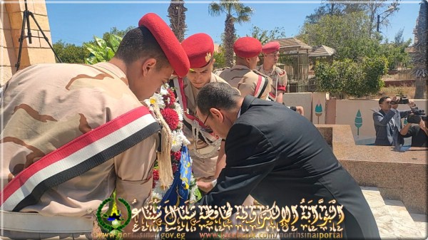 في إطار احتفالات محافظة شمال سيناء بعيدها القومي والذكرى الـ 41 لتحرير سيناء، قام اللواء دكتور محمد عبد الفضيل شوشة محافظ شمال سيناء يرافقه اللواء محمد ربيع، قائد الجيش الثاني الميداني، اللواء ممدوح أبو زيد مساعد وزير الداخلية لأمن شمال سيناء، اللواء هشام الخولى نائب المحافظ، العميد أسامه الغندور سكرتير عام المحافظة، عبد العال البدري سكرتير عام المحافظة المساعد والقيادات التنفيذية والسياسية والشعبية وأعضاء المجموعة البرلمانية بالمحافظة وعدد من مشايخ ورموز المحافظة، بوضع أكليل الزهور على قبر الجندي المجهول في ساحة الشهداء بمدينة العريش، وقراءة الفاتحة على أرواح الشهداء وسط عزف الموسيقى العسكرية لسلام الشهيد.