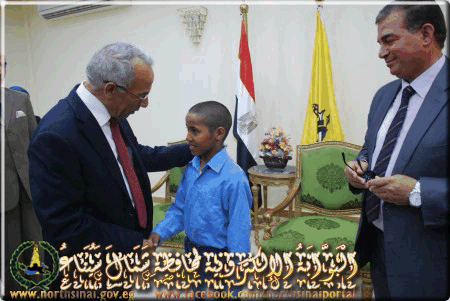 السيد المحافظ يكرم طفل الشيخ زويد الذى ماتت أمه - بتاريخ 19/5/2016