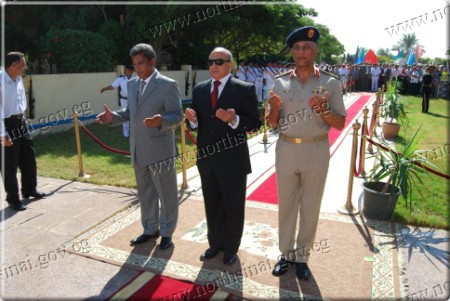 أكد المحافظ علي دور القوات المسلحة البارز في محافظة شمال سيناء لمساندة ثورة 25 يناير وأهدافها ، إلى جانب تحقيق الأمن والاستقرار على أرض المحافظة بتامين المنشات الحيوية بالمحافظة ، والمعاونة في تقديم العلاج بمستشفى القوات المسلحة بالعريش ، والتصديق لكثير من الحالات المدنية من أبناء المحافظة للعلاج بمستشفيات القوات المسلحة التخصصية بالقاهرة ، والمعاونة المباشرة للشرطة المدنية في القبض على الخارجين عن القانون وأعمال البلطجة ، وتأهيل أبناء محافظة شمال سيناء بمعسكر الجيش الثاني الميداني للالتحاق بالكليات العسكرية ، وعدم تهميش شباب التجنيد من أبناء المحافظة وتوزيعهم على جميع أسلحة القوات المسلحة ، وكذا إنهاء المشكلة التجنيدية لشباب التجنيد أكثر من 30 عاما لعدد 380 فردا من أبناء المحافظة .