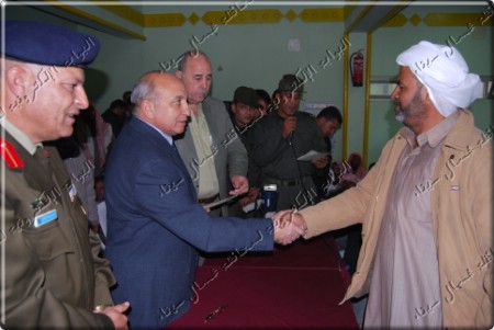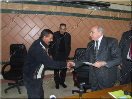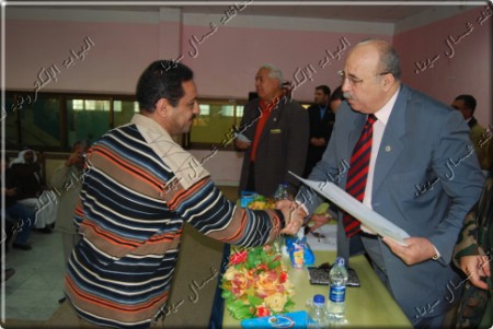 كرم اللواء جابر العربي سكرتير عام محافظة شمال سيناء نائبا عن اللواء السيد عبد الوهاب مبروك محافظ شمال، الخميس الموافق 29/12/2011، أعضاء اللجنة الخاصة بتسوية مواقف المتخلفين عن التجنيد من أبناء المحافظة ممن تخطو سن الثلاثين .