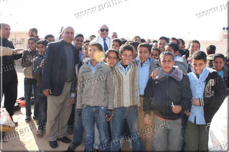من خلال برامج التعليم البيئي التي تنفذها إدارة شئون البيئة بالمدارس للعام الدراسي 2011/2012 مسابقة على طلبة المدارس في المعلومات البيئية في ثلاث مستويات : مستوى الإبتدائى ، مستوى الإعدادي ،مستوى الثانوي اختيار عدد 36 فائز بجوائز المسابقة كما يلي : - فوز عدد ثلاثة طلاب من المرحلة الثانوية بشهادة استثمار قيمتها 80 جنيه 0 فوز عدد إحدى عشر طالب من المرحلة الإعدادية بشهادة استثمار قيمتها 60 جنيه ، فوز عدد اثنان وعشرون طالب من المرحلة الابتدائية بشهادة استثمار قيمتها 50 جنيه .. وبعد التنسيق مع مديرية التربية والتعليم وإدارة العريش التعليمية ، بموافقة السيد وكيل أول الوزارة / السكرتير العام تم تسليم جوائز المسابقة في احتفالية بسيطة بمدرسة العريش الثانوية للبنات صباح يوم الخميس الموافق 22 / 12 / 2011 وبحضور كل من السادة :- الأستاذ / محمد فؤاد مدير إدارة العريش التعليمية نائبا عن وكيل وزارة التعليم بشمال سيناء ، الأستاذ / خالد أبو سلمه مدير عام التربية البيئية والسكانية بمديرية التربية والتعليم ،الأستاذ / محمد بكير مسئول العلاقات العامة بمديرية التربية والتعليم الأستاذ / حسن مدير إدارة الشيخ زويد التعليمية 0 السيد الأستاذ / عبد العظيم الرفاعى مسئول العلاقات العامة بإدارة العريش التعليمية الأستاذ / عيد سلمى أحمد مدير مدرسة العريش الثانوية بنات 0 ممثلي إذاعة شمال سيناء وجريدة الطلبة والطالبات الفائزين بالمسابقة وأولياء أمورهم .. وقد بدأت الاحتفالية بكلمة الجيولوجي جمال حلمي مصطفى مدير شئون البيئة بالمحافظة عن أنشطة التعليم البيئي للعام الدراسي الحالي والوضع البيئي بالمحافظة .. وتلا ذلك كلمة السيد الأستاذ محمد فؤاد مدير إدارة العريش التعليمية تناول أهمية رفع الوعي والثقافة البيئية بين أبناءنا الطلبة وحرص التربية والتعليم على التعاون لإنجاح برامج التعليم البيئي .. ثم تم توزيع الجوائز على الفائزين وهى شهادات استثمار إضافة إلى كاب أبيض وقلم ومسطرة مقدمين من إدارة البيئة .. وقد بلغت قيمة الجوائز المالية 2000 جنيه طبقا لتصديق سيادة الوزير المحافظ .. وقد طلب السادة الحضور إعداد مسابقة بيئية أخرى خلال النصف الثاني من العام الدراسي 2011 / 2012 لأهمية ذلك في رفع الوعي بقضايا المياه وأهمية الحفاظ عليها 0