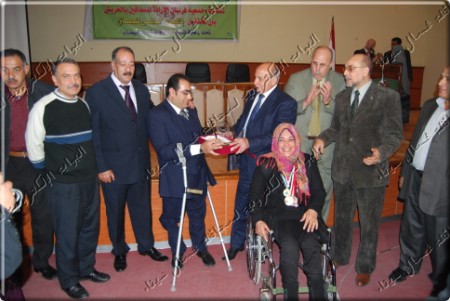 جاء هذا خلال الاحتفال باليوم العالمي للمعاق ، التي نظمته جمعية فرسان الإرادة للمعاقين ، بمركز النيل للإعلام يوم الاثنين الموافق 19/12/2011، بحضور اللواء جابر العربي سكرتير عام المحافظة ومحمود أبو المجد مدير عام مديرية التضامن الاجتماعي ، وحسن صالح رئيس مجلس إدارة الجمعية.