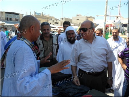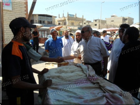 قام اللواء السيد عبد الوهاب مبروك محافظ شمال سيناء ، الجمعة الموافق 19/8/2011 ، بجولة تفقدية في السوق الرئيسي بوسط مدينة العريش.