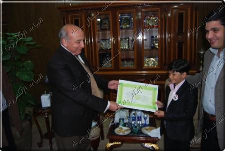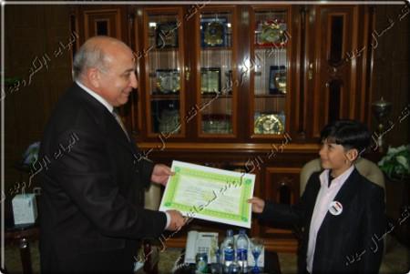 منح المحافظ الطفل شهادة تقدير وهدية تذكارية بمناسبة عودته سالما إلي أحضان أسرته.