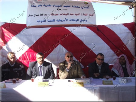 تحت رعاية اللواء السيد عبد الوهاب مبروك ،محافظ شمال سيناء، تم توقيع بروتوكول تعاون بين محافظة شمال سيناء ، والوكالة الأمريكية الدولية للتنمية ، مساء الاثنين الموافق 26/12/2011 ، لنقل ملكية ثلاثة محطات تحلية لمياه الآبار بمناطق المسواطية بقرية المغارة و المنبطح و بئر بدا بمركز الحسنه بوسط سيناء من مشروع لايف سيناء الممول من الوكالة الأمريكية للتنمية إلي محافظة شمال سيناء.