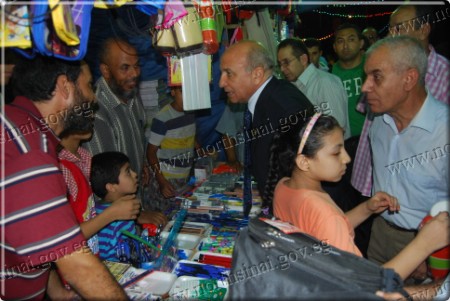 افتتح اللواء السيد عبد الوهاب مبروك محافظ شمال سيناء ،مساء الاثنين الموافق 12/9/2011 ، يرافقه عبد الله قنديل بدوى رئيس الغرفة التجارية واللواء جابر العربي السكرتير العام للمحافظة واللواء مدحت صالح رئيس مركز ومدينة العريش وفتحي راشد مدير عام التموين بالمحافظة .. معرض العودة إلى المدارس والاستعداد للعام الدراسي الجديد ، والذي تنظمه الغرفة التجارية بمحافظة شمال سيناء بالاشتراك مع الصندوق الاجتماعي للتنمية .