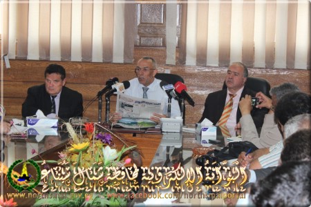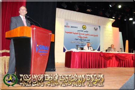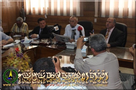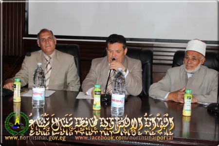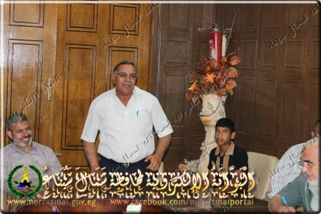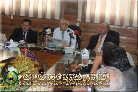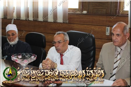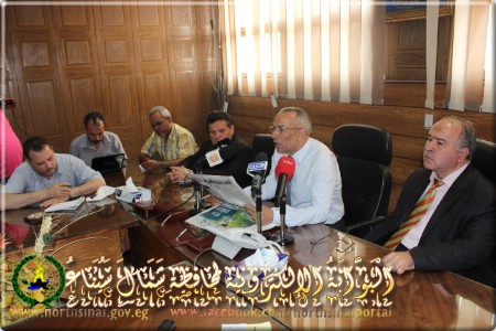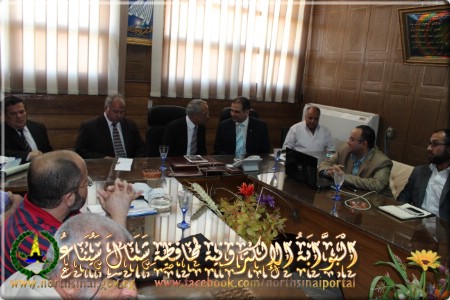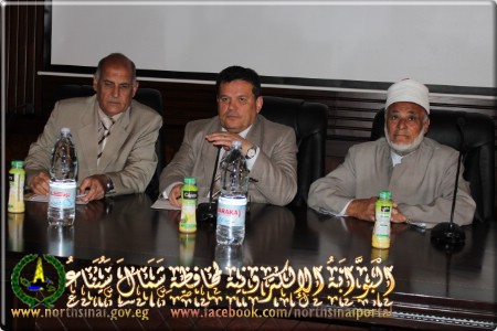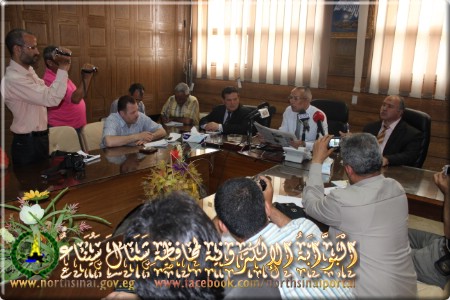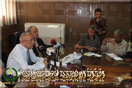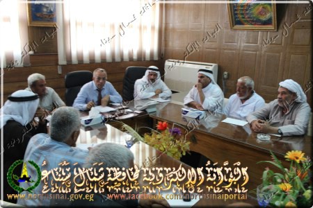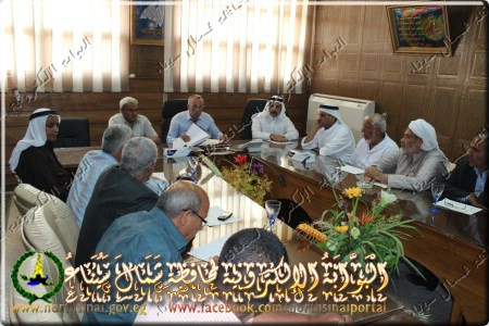 واستعرض المحافظ مبادرات تنمية سيناء وجعل عام 2014هو عام تنميه سيناء بمبادرات حكوميه وأهلية باشتراك منظمات المجتمع المدني والجمعيات الأهلية وبمشاركة من رجال الأعمال
