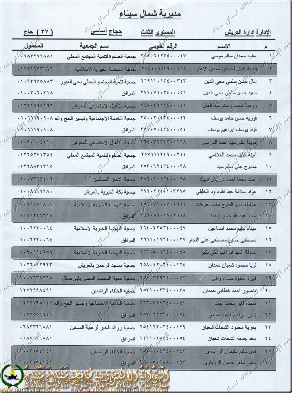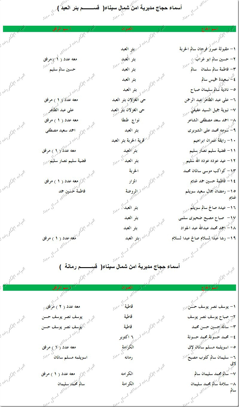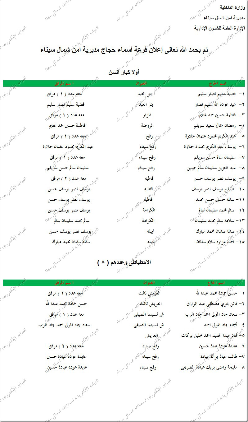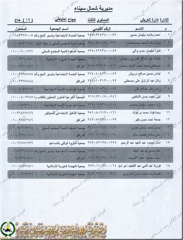 بيان بأسماء حجاج المحافظة بعد استبعاد نسبة 20%