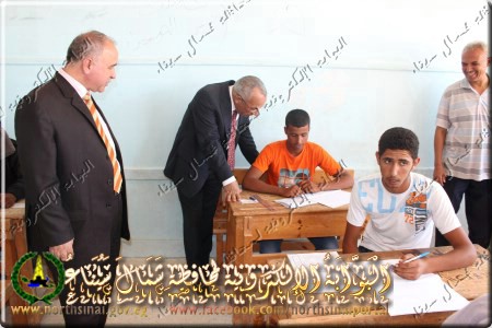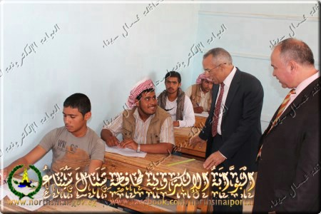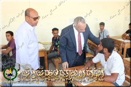 قام اللواء السيد عبد الفتاح حرحور محافظ شمال سيناء .. يرافقه الدكتور عادل قطامش نائب المحافظ وحسن حجازى وكيل وزارة التربية والتعليم ومحمد فؤاد مدير ادارة العريش التعليمية .. بتفقد امتحانات الشهادتين الابتدائية والاعدادية بشمال سيناء .. حيث اطمأن على حسن سير الامتحانات وهدوء اللجان ، وتوفير كافة احتياجات التلاميذ .