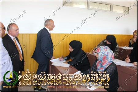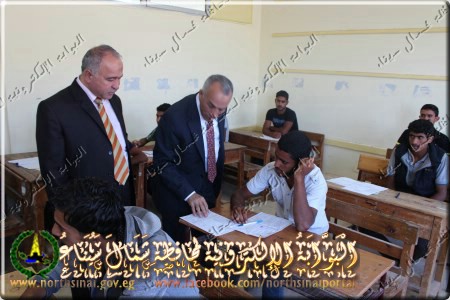 وقال المحافظ انه تقدم للامتحانات بالدبلومات الفنية للتعليم الصناعي والزراعي والتجاري عدد 3950 طالب وطالبة، تم توزيعهم علي عدد 20 لجنه بمراكز المحافظة الستة..منهم 9 لجان بمدينة العريش، و 4 لجان بمدينة الشيخ زويد، و3 لجان بمدينة بئر العبد، ولجنتين بمدينة رفح، ولجنه بمدينة الحسنة، وأخرى بمدينة نخل.