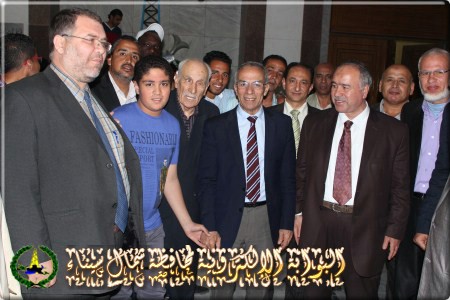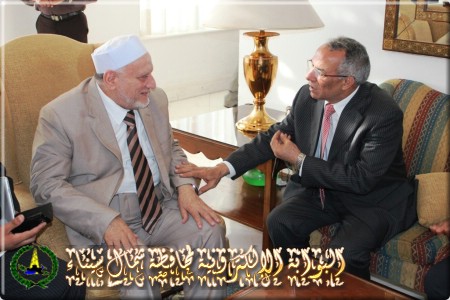 إستقبل اللواء السيد عبد الفتاح حرحور محافظ شمال سيناء، الدكتور احمد عمر هاشم، رئيس جامعة الازهر السابق بعد وصوله الي مدينة العريش للمشاركة في احتفالات المحافظة بعيدها القومي من خلال القاء خطبة الجمعة بمسجد النصر بالعريش.