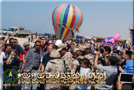 وقد انطلقت المسيرة والاحتفالية الكبرى من أمام بنك القاهرة فى شارع الجيش بالعريش متجهة الى مسجد النصر وشارع 23 يولية الرئيسى والجامع الرفاعى بوسط مدينة العريش .. ثم عادت عبر شارع 26 يولية الرئيسى وصولا الى مجلس مدينة العريش .. حيث كان فى استقبالها المهندس محمد فهمى البيك رئيس مركز ومدينة العريش والمهندس عاطف مطر وكيل وزارة الزراعة والدكتور حسام رفاعى نقيب الصيادلة والناشط السياسى المهندس وائل سليم وعدد من القيادات الشعبية والتنفيذية .