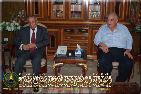 التقي اللواء السيد عبد الفتاح حرحور، محافظ شمال سيناء، وفد المحامين بشمال سيناء، وذلك بقاعة الإجتماعات بمكتبه، بديوان عام المحافظة بالعريش، بحضور حمدي طولسون، نقيب المحامين بالعريش، وراشد الجندي، عضو مجلس نقابة المحامين بشمال سيناء.