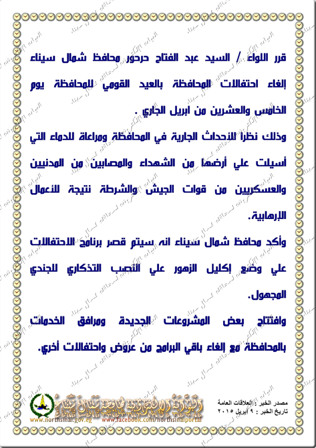 تاريخ الخبر : 31 ديسمبر 2015 |  | تمت الموافقة | north | 02/01/2016 12:44 م | 02/01/2016 12:44 م | | north | |