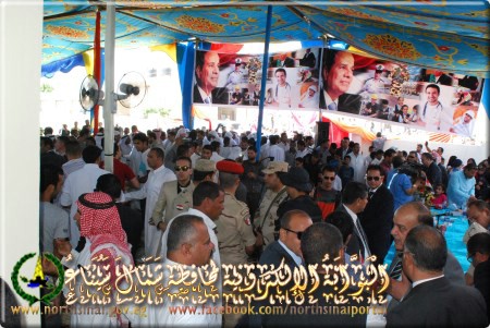 أقيمت بمدينة العريش مسيرة واحتفالية كبرى .. فى اطار احتفالات محافظة شمال سيناء بمناسبة افتتاح قناة السويس الجديدة .. وتضمن ماراثون للشباب والطلائع وكبار السن ومسيرة لمختلف الفئات ، وذلك باشتراك مجلس مدينة العريش ومديرية الشباب والرياضة ومراكز وأندية الشباب والطلائع والهلال الأحمر المصرى وعدد من منظمات المجتمع المدنى والقيادات الشعبية والتفيذية ورموز المجتمع السيناوى .. حيث تم رفع اعلام مصر وصور قناة السويس والرئيس السيسى واللواء السيد عبد الفتاح حرحور محافظ شمال سيناء ، وتم ترديد الأغانى والشعارات الوطنية لتهنئة شعب مصر والرئيس السيسى بافتتاح قناة السويس الجديدة هدية مصر الى العالم .