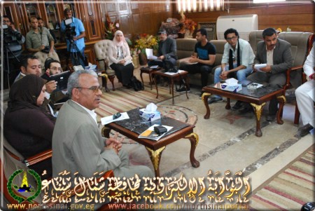 عقد 3 محافظون مؤتمرا لمناقشة معوقات تنفيذ مشروع تنمية شمال سيناء وبحث أساليب دفع وانجاز المشروع في أقرب فرصة لضمان الاستفادة منه في تنمية شمال سيناء والمحافظات المرتبطة بها في تنفيذ المشروع .