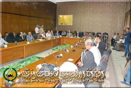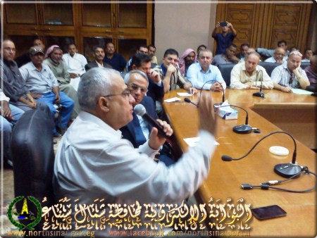 وأكد للواء السيد عبد الفتاح حرحور محافظ شمال سيناء أن هناك تعليمات من المهندس ابراهيم محلب رئيس الوزراء بناء على توجيهات الرئيس عبد الفتاح السيسى بمناقشة معوقات مشروع تنمية شمال سيناء لدفع العمل به لتعظيم الاستفادة منه وعرض مقترحات الحل وأساليب دفعه لتحقيق الانجاز المطلوب .. مشيرا الى أنه سيتم عرض تقرير شامل عن المشروع ومعوقات تنفيذه على رئيس الوزراء والوزراء المعنيين .
