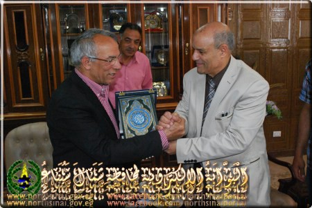 التقى اللواء السيد عبد الفتاح حرحور محافظ شمال سيناء فى مكتبه اليوم مع الدكتور ممدوح غراب رئيس جامعة قناة السويس والذى يزور المحافظة حاليا .. وقد تناول اللقاء أوجه التعاون بين محافظة شمال سيناء وجامعة قناة السويس فى شتى المجالات ، وخاصة تطوير فرع الجامعة بالعريش ودفع عملية انشاء كليات جديدة بالفرع تمهيدا لاستقلاله وتحويله الى جامعة مستقلة على أرض المحافظة.