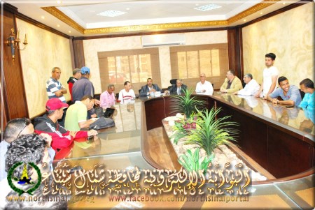 قرر اللواء السيد عبد الفتاح حرحور، محافظ شمال سيناء، عقد اجتماع أسبوعي للمجلس التنفيذي للمحافظة، وذلك يوم الأربعاء من كل أسبوع، بالتزامن مع الاجتماع الأسبوعي لمجلس الوزراء، لحل جميع المشكلات.