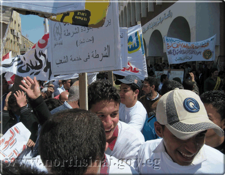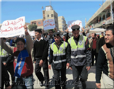 قاد اللواء عبد الوهاب مبروك محافظ شمال سيناء، الاثنين الموافق 28/3/2011 ، مسيرة حاشدة ، طافت شوارع مدينه العريش، للترحيب بعودة رجال الشرطة إلي الشارع السيناوي.