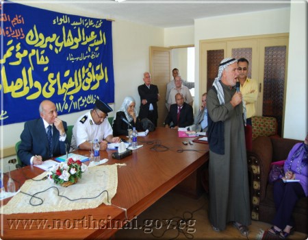 تحت رعاية السيد اللواء السيد عبد الوهاب مبروك محافظ شمال سيناء ، و سعد عبد الرحمن رئيس الهيئة العامه لقصور الثقافة اقيم الاربعاء بنقابة المهندسين بالعريش مؤتمر التوافق الاجتماعي و المصالحه بين قوي الشعب .