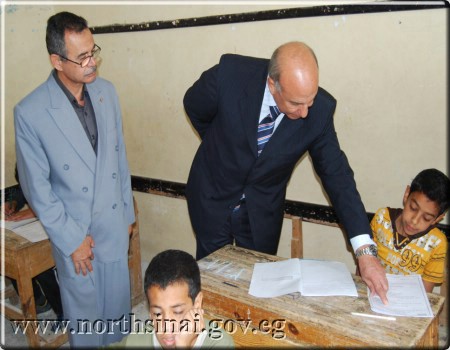 تفقد اللواء السيد عبد الوهاب مبروك محافظ شمال سيناء ، اليوم السبت الموافق 14/5/2011 ، لجان امتحانات الشهادتين الابتدائية والاعدادية العامة للصفين السادس الابتدائى والثالث الاعدادى العام بالمحافظة، وذلك للاطمئنان على حسن سير العمل وتوفير كافة احتياجات التلاميذ باللجان لتيسير أدائهم الامتحانات.