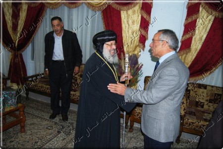استقبل المحافظ أثناء زيارته للكاتدرائية الأنبا قزمان أسقف سيناء الشمالية وعدد من القساوسة ورجال الدين المسيحي ، ورافق المحافظ أثناء زيارته للكاتدرائية نائبه الدكتور عادل قطامش واللواء سامح عيسي سكرتير عام المحافظة واللواء سميح احمد بشادي مدير امن شمال سيناء ، والدكتور أمين عبد الواجد أمين وكيل وزارة الأوقاف بشمال سيناء ،و القيادات التنفيذية و الشعبية و الدينية بالمحافظة.