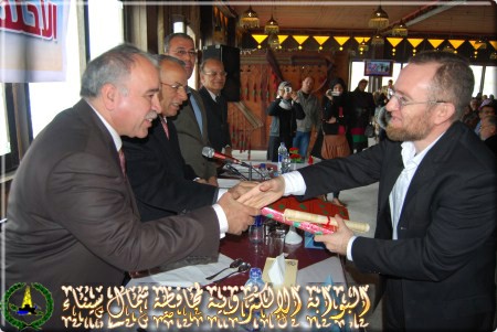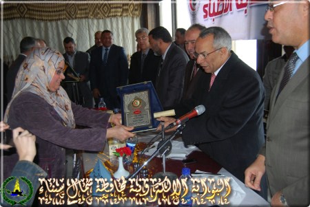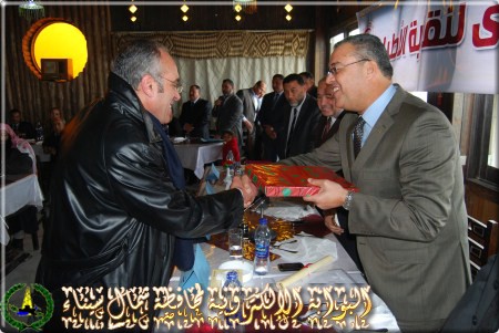 هذا .. وقد قام المحافظ بتوزيع شهادات التقدير على الأطباء المكرمين وأبنائهم المتفوقين .. كما منحت النقابة درع النقابة إلى كل من اللواء السيد عبد الفتاح حرحور ( المحافظ ) والدكتور عادل قطامش نائب المحافظ واللواء سميح أحمد بشادي مدير الأمن والدكتور عمار جودة رئيس مركز ومدينة العريش .