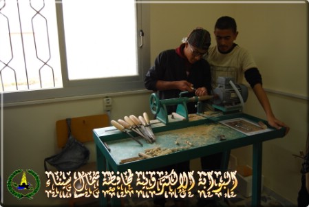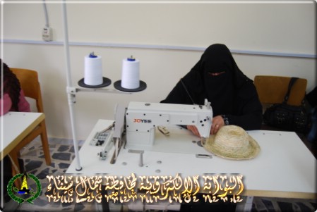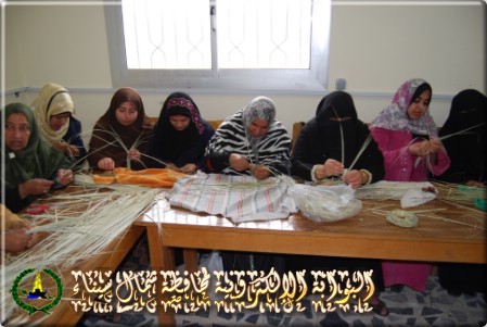 والورشة الثانية للتدريب على انتاج المشغولات المختلفة من سعف النخيل ، وتضم 5 ماكينات وعدد 26 فردا لانتاج المشغولات من سعف النخيل .