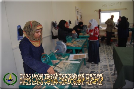 وصرح المهندس رؤف كمال مدير عام المشروع أن الورشة الأولى للتدريب على انتاج الأرابيسك من جريد النخيل ، وتضم 10 مخارط ومنشار كهربائى وماكينة ثقب .. ويتم تدريب عدد 25 شابا وفتاة على انتاج مشغولات الأرابيسك من جريد النخيل .