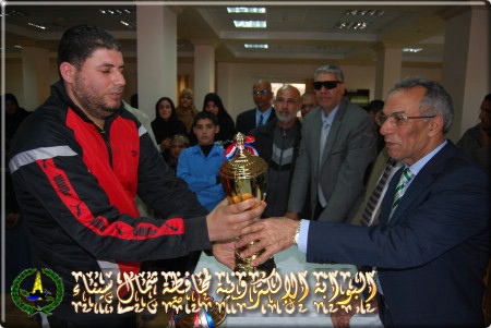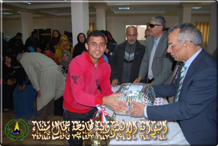 قام محافظ شمال سيناء اللواء السيد عبد الفتاح حرحور، يرافقه نائبه الدكتور عادل قطامش واحمد شعبان وكيل وزارة الشباب والرياضة بالمحافظة، بتوزيع الجوائز وكؤوس التفوق علي الفائزين في مسابقة اللقاءات التنشيطية لمراكز شباب المدن والتي أقيمت بالمدينة الشبابية بالعريش .. تحت شعار " لا للعنف ".