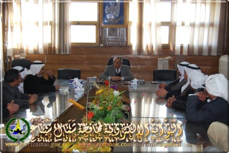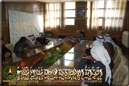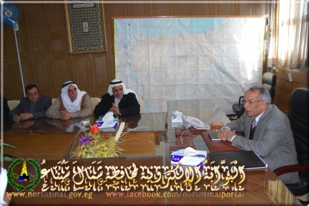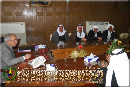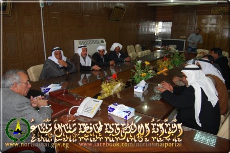 التقي اللواء السيد عبد الفتاح حرحور، محافظ شمال سيناء، وفد من عشيرة الجريرات التابعة لقبيلة السواركة، وذلك بقاعة الاجتماعات بالديوان العام.