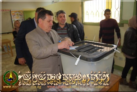 قام اللواء سامح عيسي سكرتير عام المحافظة، بالإدلاء بصوته بلجنة المغتربين بمدرسة الإعدادية بنين بالعريش.