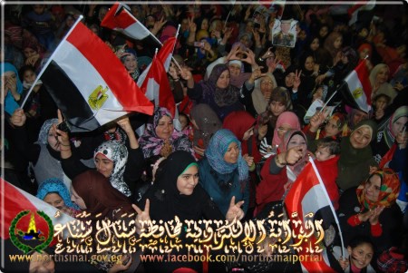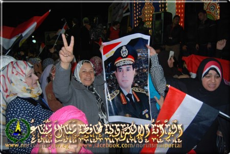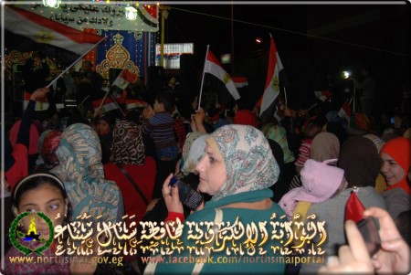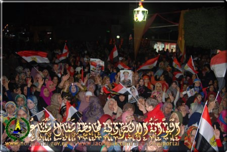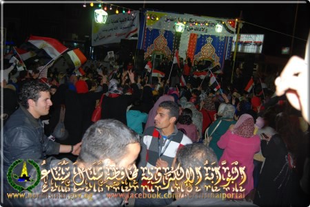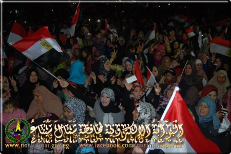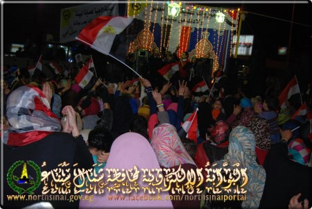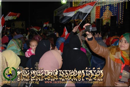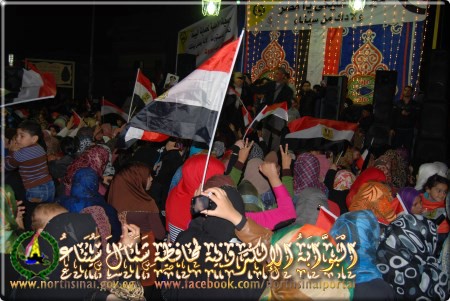 نظمت القوى والتيارات السياسية والحركات الثورية بشمال سيناء احتفالا جماهيريا حاشدا بمناسبة نجاح الاستفتاء على الدستور .. حيث أقيم سرادق ضخم أمام كلية التربية بالعريش .