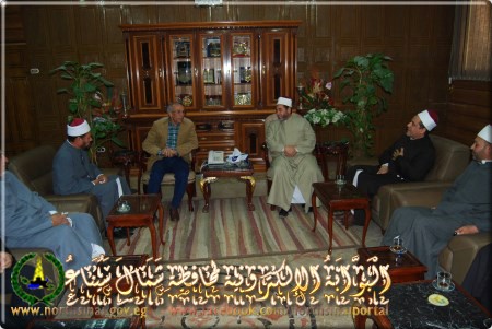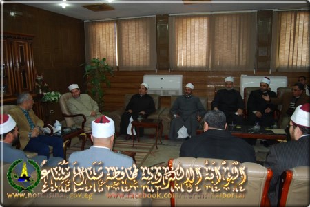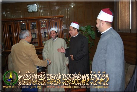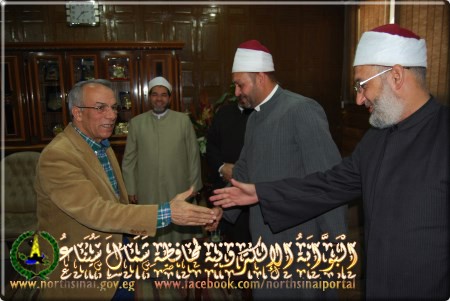 وأعلن المحافظ فى لقائه مع قافلة الأزهر والأوقاف التى تزور محافظة شمال سيناء حاليا برئاسة الدكتور رمضان محمود حسان أستاذ البلاغة بجامعة الأزهر ، وتضم عددا من أساتذة جامعة الأزهر وعلماء وزارة الأوقاف .. بحضور الدكتور أمين عبد الواجد وكيل وزارة الأوقاف والشيخ جنيدى محمد عبد السميع من المنطقة الأزهرية بشمال سيناء .. أن القافلة لها دور هام فى مواجهة الفكر المتطرف ونشر الدعوة الوسطية للدين الاسلامى ، وذلك من خلال خطبة الجمعة بمساجد العريش .. مشيرا الى أنه تم اعداد برنامج لزيارة القافلة متضمنا القاء خطبة الجمعة والقاء الدروس الدينية عقب صلاة المغرب فى مساجد العريش .. وأن المحافظة من جانبها تقوم بتنظيم القوافل الطبية .. الى جانب قوافل الشئون الاجتماعية التى تضم أحد الدعاة ، وذلك لليوم الواحد .. لخدمة أبناء سيناء ، وخاصة مناطق وسط سيناء .