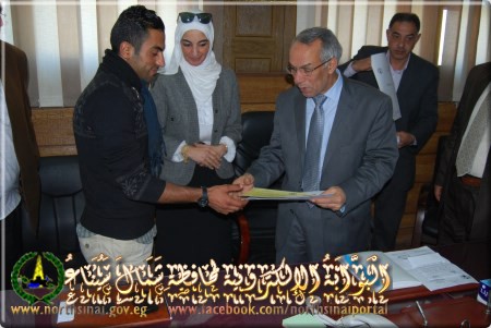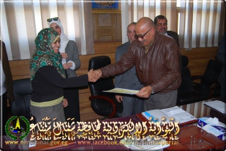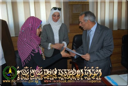 جاء هذا خلال حفل التكريم الذي عقد بديوان عام المحافظة بالعريش، لعدد 30 متدرب ومتدربة ممن اجتازوا التدريب بالمشروع، وذلك بحضور عاطف مطر، مدير عام مديرية الزراعة، وفتحي راشد مدير عام مديرية التموين، وحسن درب مدير عام مديرية القوي العاملة..حيث تم منح المتدربين شهادات التقدير.