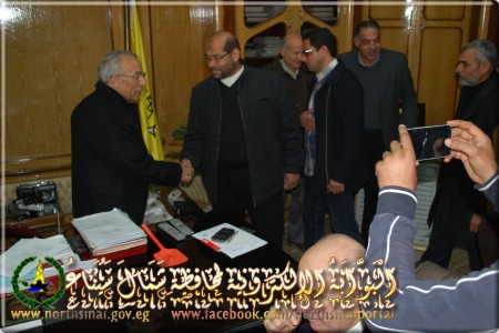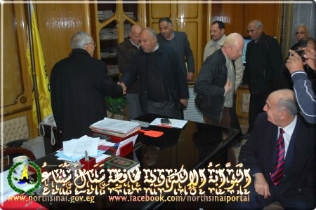 ألتقي اللواء السيد عبد الفتاح حرحور، محافظ شمال سيناء بمديري الإدارات وموظفي الديوان العام، وذلك بمكتبه، بديوان عام المحافظة بالعريش.