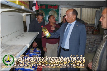 رافق السكرتير العام خلال جولته التفقدية المحاسب فتحي راشد ، مدير عام مديرية التموين والتجارة الداخلية بشمال سيناء ، ومدير الرقابة التموينية بالمديرية.