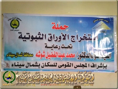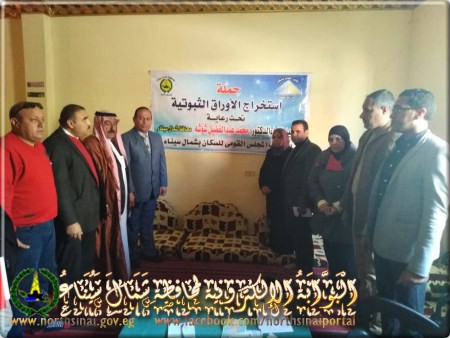 نفذ المجلس القومي للسكان بشمال سيناء بالتنسيق مع مجلس مدينة رفح، حملة لاستخراج الأوراق الثبوتية الرسمية للمواطنين الذين تخلفوا عن القيد في السجلات الرسمية للدولة من المنقولين من رفح والمقيمين في تجمعات بمحافظة الإسماعيلية.