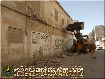 أعلن مركز ومدينة العريش عن تنفيذ حملة إزالة في أحد شوارع مدينة العريش، لشرفات معلقة ، بسبب خطرها الداهم علي أرواح المواطنين.