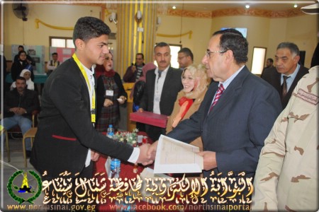 وجه المحافظ الشكر إلي جميع القائمين علي المعرض من طلاب ومشرفين.. مطالبا بأن تشتمل المسابقة خلال السنوات المقبلة باقي طلاب الإدارات التعليمية خاصة إدارتي الحسنة ونخل.