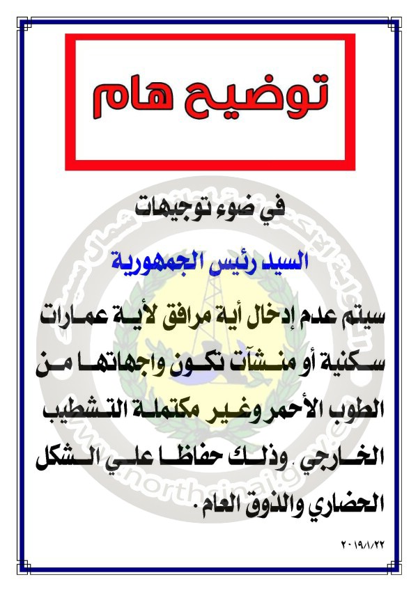 عدم إدخال أية مرافق لأية عمارات سكنية أو منشآت تكون واجهاتها من الطوب الأحمر وغير مكتملة التشطيب الخارجي